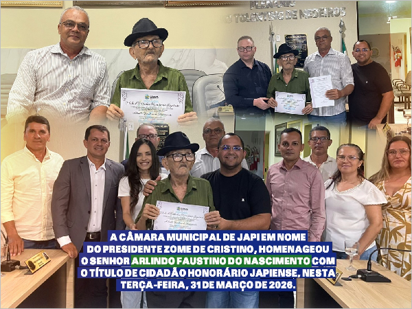Foto: A iniciativa partiu do vereador Manoel Valdécio, mais conhecido como Zome de Cristino, autor da proposição que concedeu o título, reforçando o reconhecimento público à história e ao legado de Arlindo.